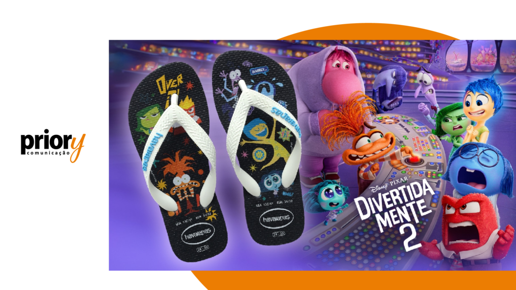 A Havaianas lançou um modelo exclusivo inspirado na animação, com estampas vibrantes e unissex que trazem personagens do filme, tanto antigos quanto novos. A coleção não apenas apela ao público infantil, mas também aos adultos que se identificam com os personagens e a mensagem do filme, mostrando como uma marca pode utilizar elementos emocionais para aumentar o apelo de seus produtos.