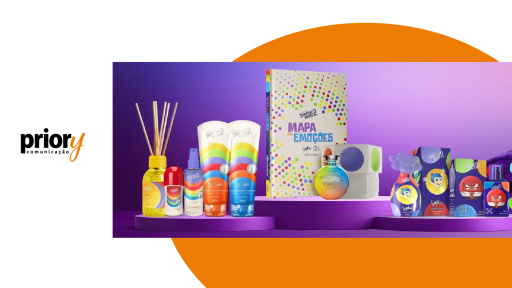 Aproveitando o lançamento do filme, O Boticário anunciou uma nova linha de produtos inspirada em “Divertida Mente 2”, que chegará às lojas em 23 de setembro. A coleção Sophie e Quasar Next Divertida Mente inclui perfumes em formatos arredondados que lembram as esferas de memórias de Riley (a personagem principal do filme), além de itens como necessaires, protetores térmicos, desodorantes e hidratantes corporais. A linha promete capturar as cores e emoções dos personagens, proporcionando aos consumidores uma experiência sensorial única.